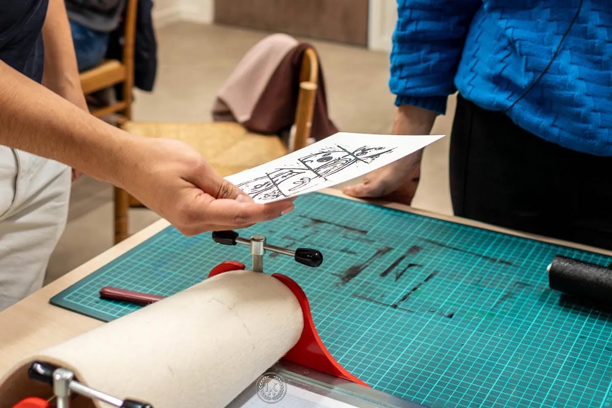 Once the engraving is complete, it’s time to print! You will first test your work with a first print to make sure everything is in place. Then you can make three prints of your work in A5 format. These unique postcards, created with your own hands, will be true works of art ready to be displayed and/or shared.