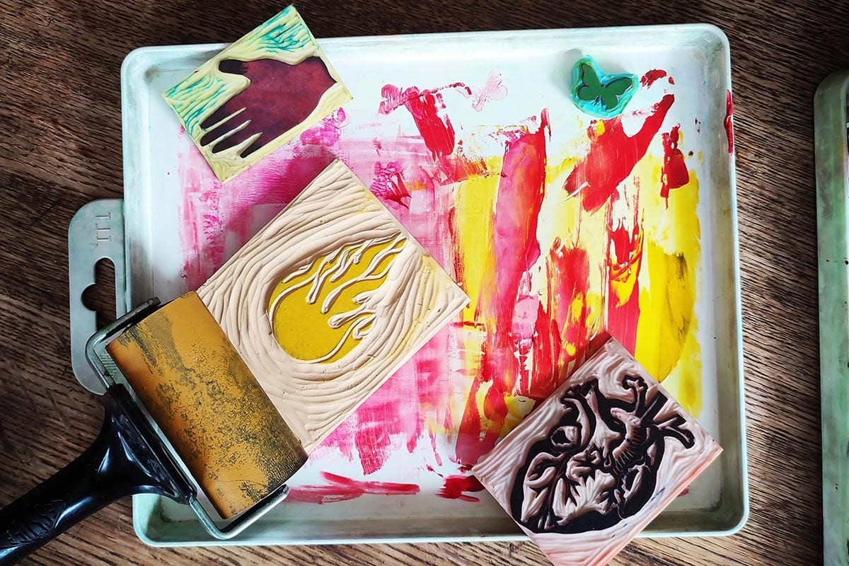 Once they have settled in, it will be time to get creative! Veronica will guide everyone through the process of creating their own personalised stamp. Using engraving erasers, special tools, transfer paper and a variety of colourful inks, participants will create two engravings, one on each side of the eraser. Whether you start with a personal sketch or are inspired by the available models, Veronica will guide you through the process to help you achieve a unique result. If you have the time and inspiration, you can even create a second stamp.